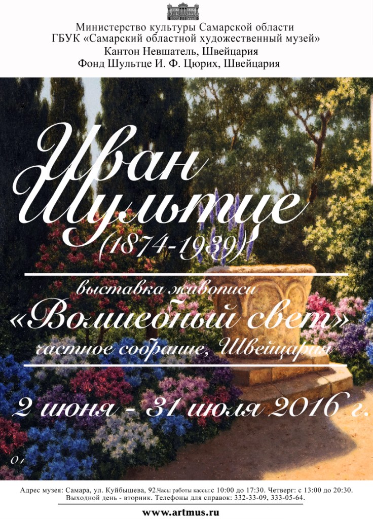 Представляем абсолютно эксклюзивный проект - первую в России выставку Ивана Шультце, яркого представителя русской пейзажной школы начала XX века и первой волны русской эмиграции. Выставка в России демонстрируется исключительно в нашем музее. В экспозицию вошло 50 картин.
