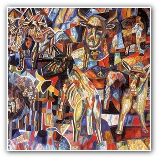 Павел Филонов – самый необычный из русских авангардистов, нищий аскет и фанатик, разработавший собственную философию «аналитического искусства», по которой в любом, даже самом миниатюрном карандашном рисунке, должна присутствовать вся Вселенная. Филонов считал, что художнику необходимо руководствоваться «принципом сделанности», одним из главных положений аналитического метода. Глаз художника должен не столько видеть, сколько знать; цель художника – изображать не лицо человека, а его мышление и психологию, найти, исследовать и беспристрастно зафиксировать механизм устройства Вселенной. Он рисовал формулы (весны, буржуазии, интервенции) – формулы явлений, написанные красочными символами и знаками, открывающими истинную сущность предмета. Представленную на выставке картину «Пейзаж (формула весны)» художник строит так, как природа творит из атомов и молекул более крупные образования. Порой, кажется, что своих героев Филонов видел через микроскоп. «Атомы», из которых Филонов составлял свои картины, в которых хотел отображать не жизнь, а ее внутренние процессы, создают иллюзию движения, замысловатую паутину линий и пятен, сложную логику сюжетов и тайну образов. Главный принцип его аналитического искусства – организм картины должен расти, как растет все живое в природе.