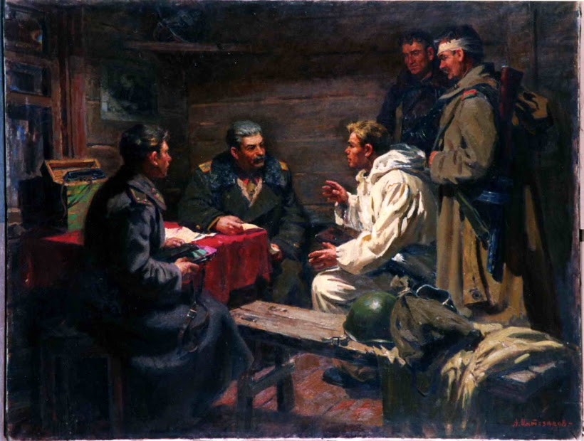 Картины с изображением вождя народов, портреты его соратников — В. Молотова, К. Ворошилова и других – демонстрируют безошибочность и совершенство разработанных социалистическим реализмом методов сильнейшего воздействия на психику потенциального зрителя.