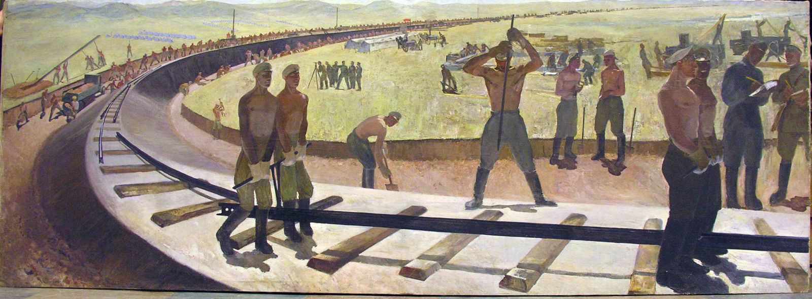 Николаев К.В. "Прокладка железнодорожного пути в Магнитогорске". 1930 г. Х.,м., 139,5х380 см.