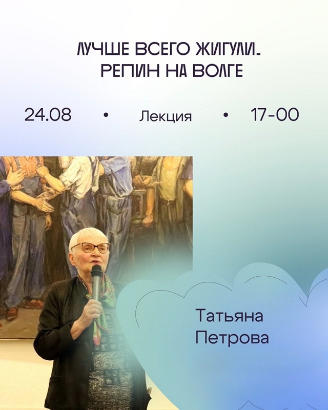 Сегодня в рамках «Волга фест 2025» состоится лекция заместителя директора по научной работе Татьяны Анатольевны Петровой «Лучше всего Жигули. Репин на Волге»